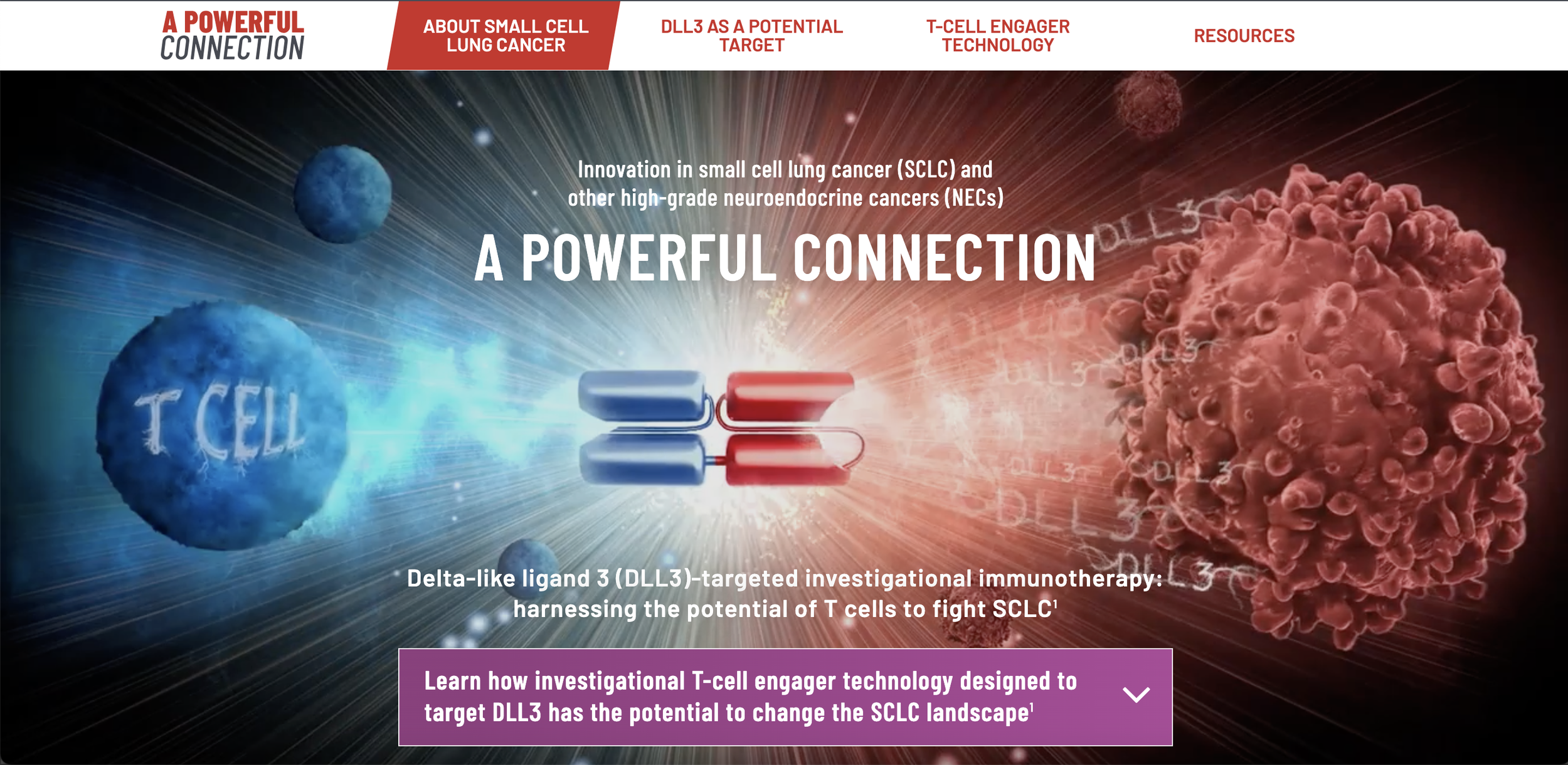 The Tarlatamab DSE site animation. The full site can be found here. I worked on every aspect of the site from creating charts and graphs to iterating layout options and also designed the “Powerful Connection” lock-up.